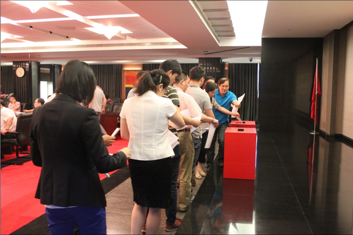????? 89名 党员代表认真听取并审议通过了党委、纪委工作报告之后,按照换届选举的有关议程,进行了无记名差额选举,产生公司新一届党委、纪委成员,并在随后的新一届 党委、纪委第一次全体委员会上选举产生了党委书记、党委副书记,纪委书记、纪委副书记。最后,大会在雄壮的国际歌中胜利结束。