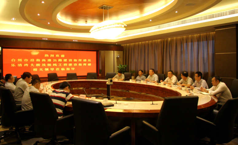 ???? 近日,公司总经理缪雷鸣、副总经理周维平及项目配送部相关人员分别接待了台州市沿海高速公路建设指挥部及乐清湾大桥及接线工程指挥部、宁波市高等级公路建设指挥部的有关领导。公司缪总一行与来访领导就加强深入合作事宜进行了洽谈交流。